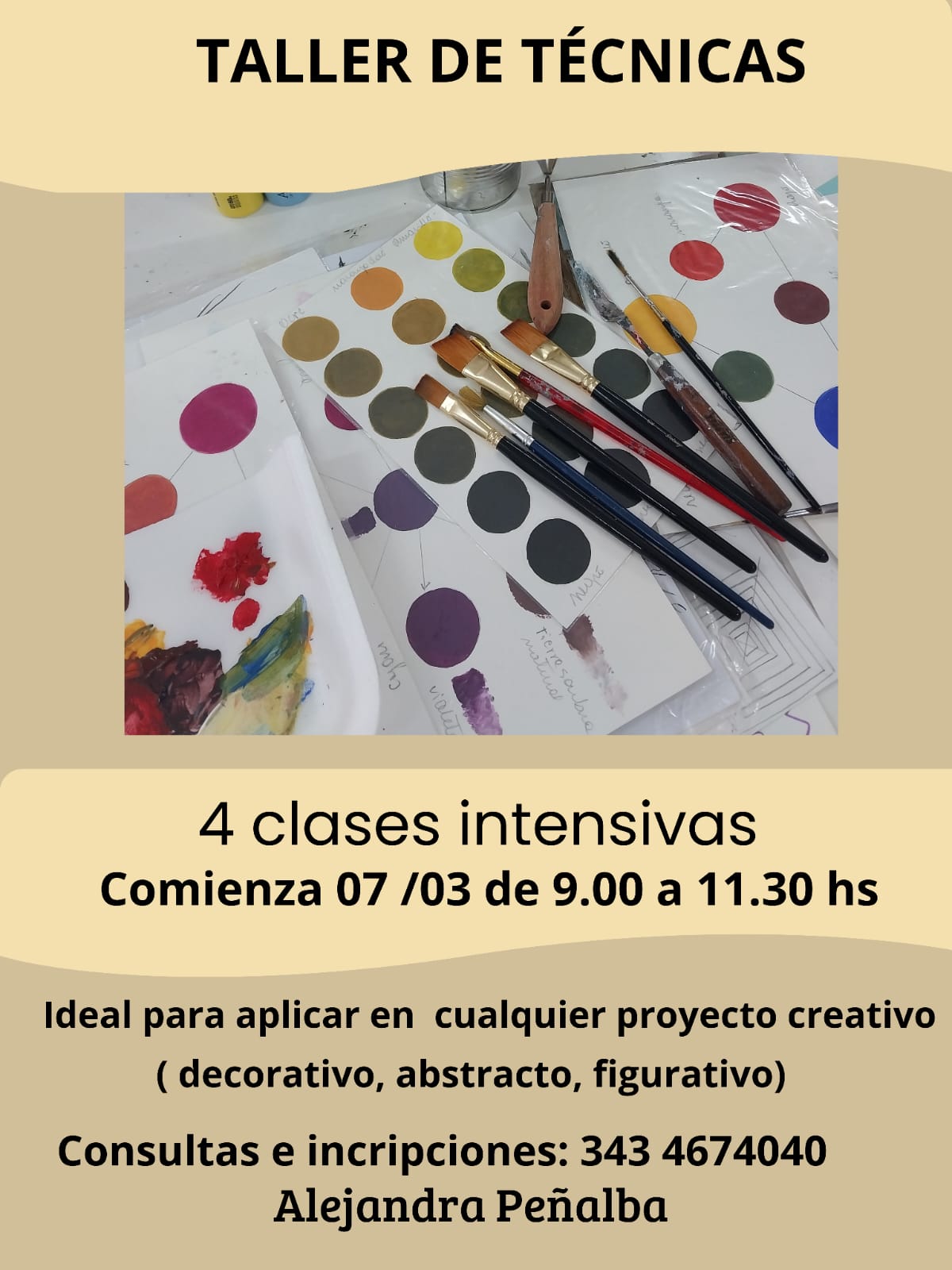 La agenda comienza el 7 de marzo con un Taller de Técnicas de cuatro clases intensivas, que se dictará los sábados de 9:00 a 11:30 hs. Esta capacitación está pensada para brindar herramientas aplicables a cualquier proyecto, ya sea de estilo decorativo, abstracto o figurativo.
